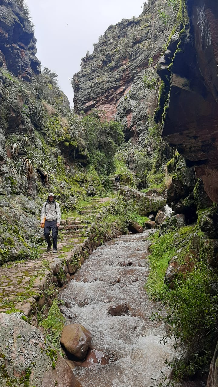 Las vistas de los picos de la Cordillera de Urubamba son espectaculares: nevados, Pitusiray, Sahuasiray. Poco después del paso iniciarás tu descenso hacia Huchuy Qosqo caminando por el camino inca que conduce a la quebrada de León Punku, donde encontrarás restos de un puente y camino Inca.