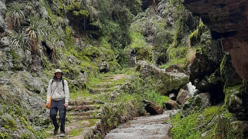 Caminata en el antiguo Camino Inca hacia el Valle Sagrado.