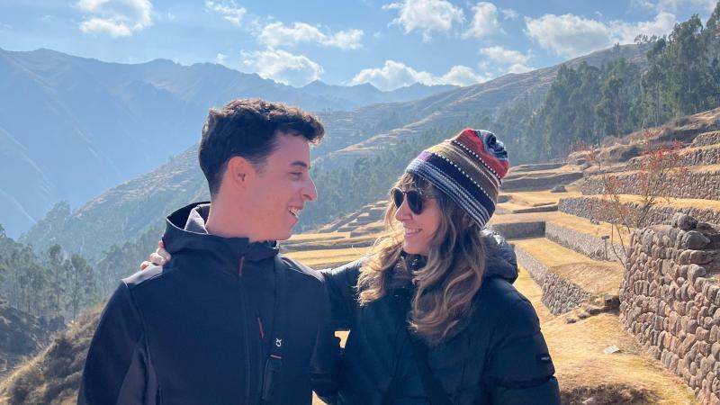 Mochila pequeña con objetos personales para su viaje a Machu Picchu